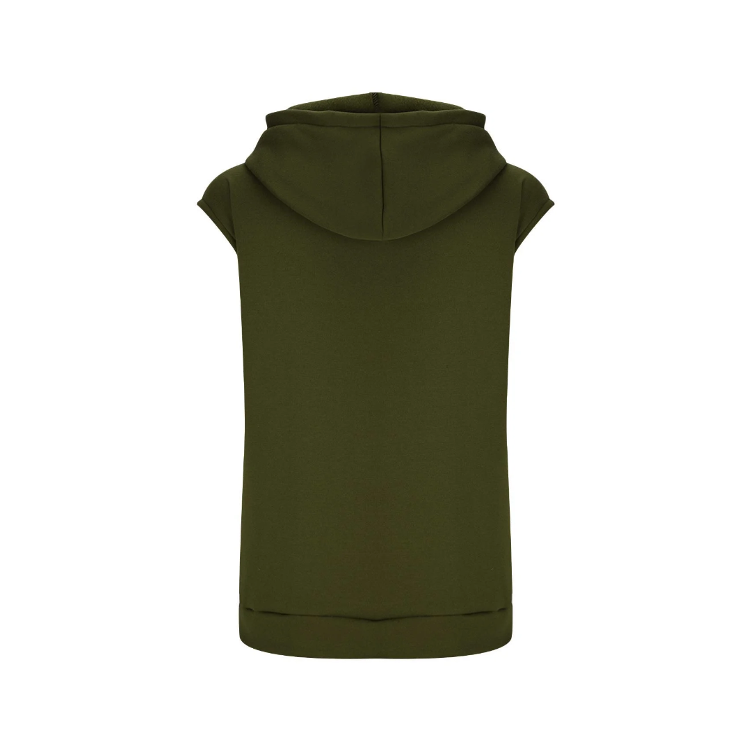 An olive hooded top with a clean front print that adds a nice touch. It’s comfortable, easy to wear, and perfect for everyday outfits.